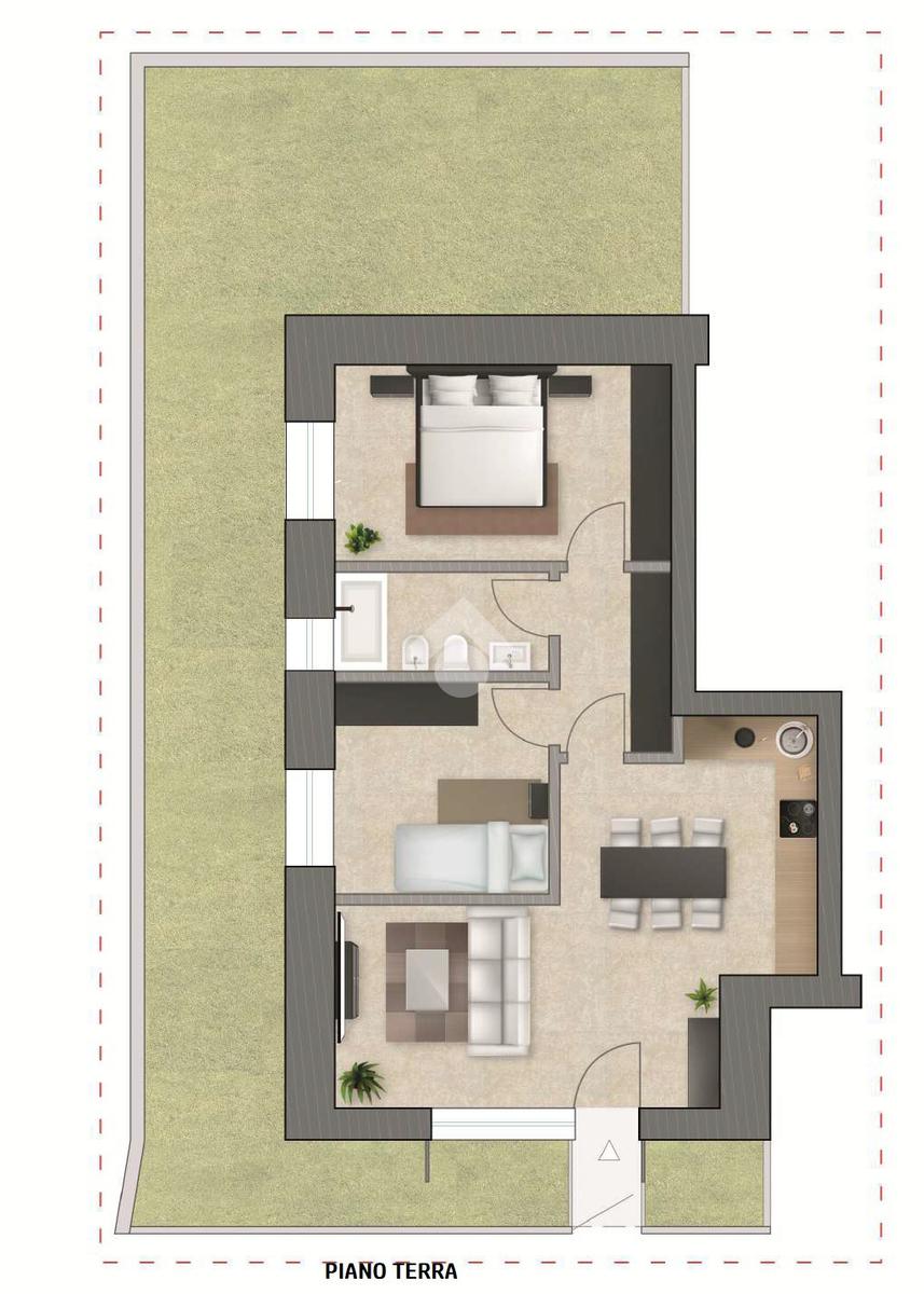 L’appartamento sarà inserito in un moderno complesso di nuova costruzione immerso nel verde, realizzato con tecnologie all’avanguardia e con il massimo efficientamento energetico (Classe A).